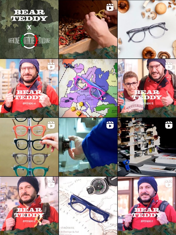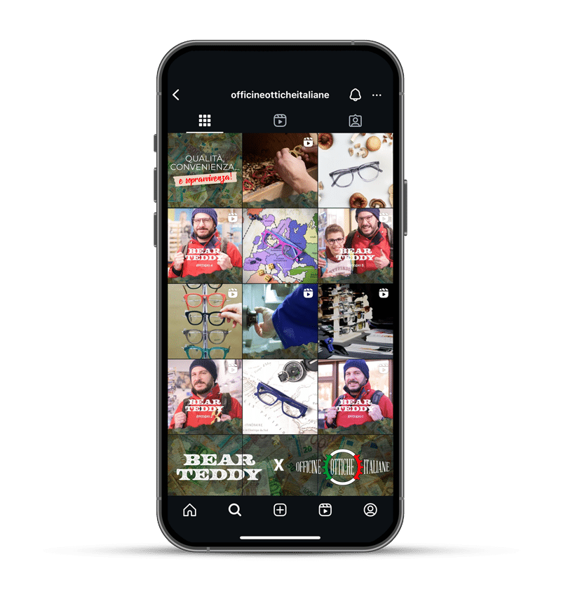 Parallelamente ai video, sono stati ideati numerosi contenuti tematici per mantenere l’engagement e rafforzare il messaggio della campagna. Le immagini create hanno unito il mondo surreale di Bear Teddy ai prodotti e servizi di Officine Ottiche Italiane, rafforzandone il legame.